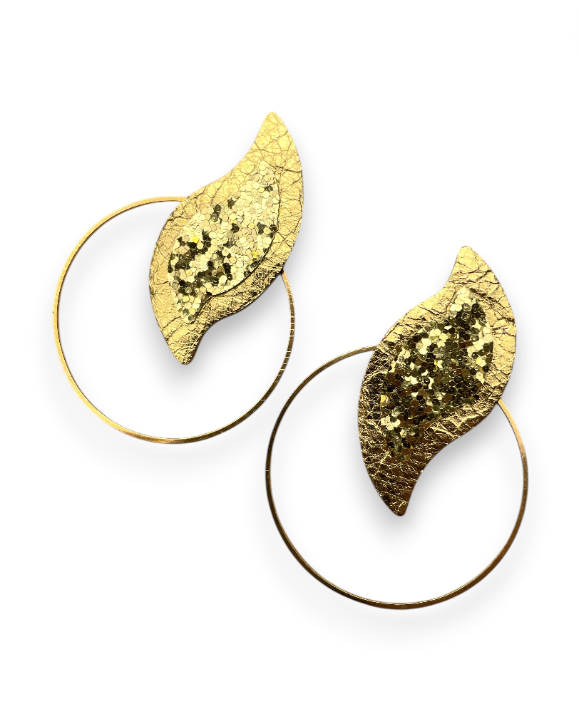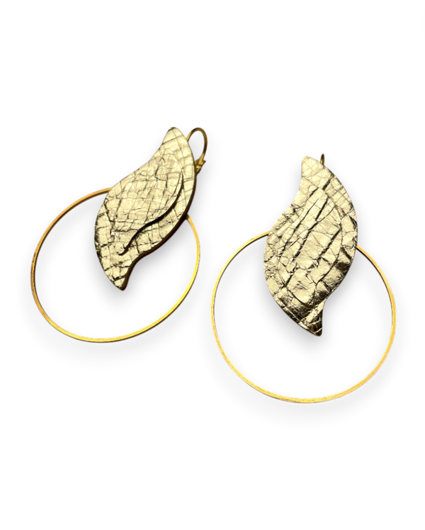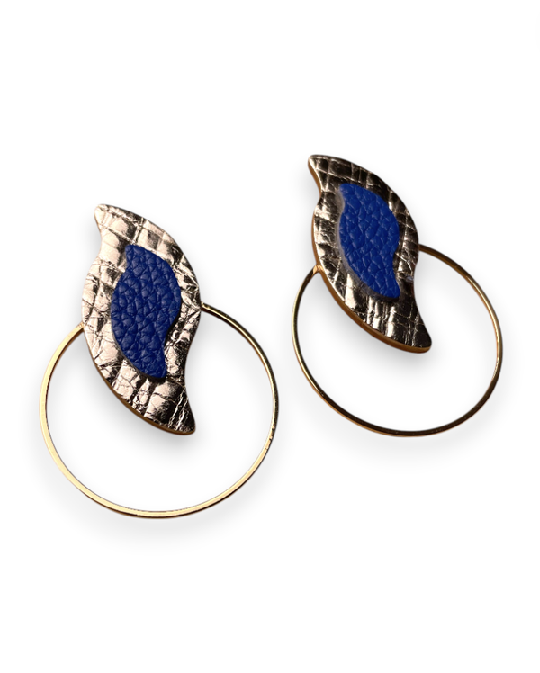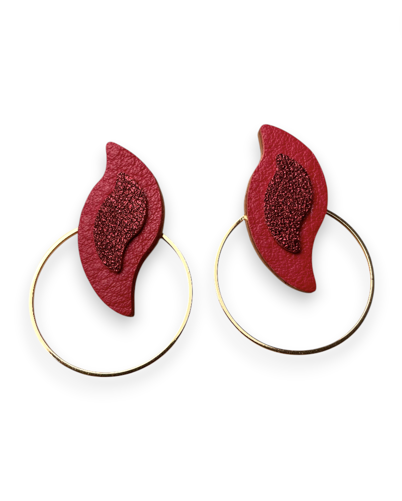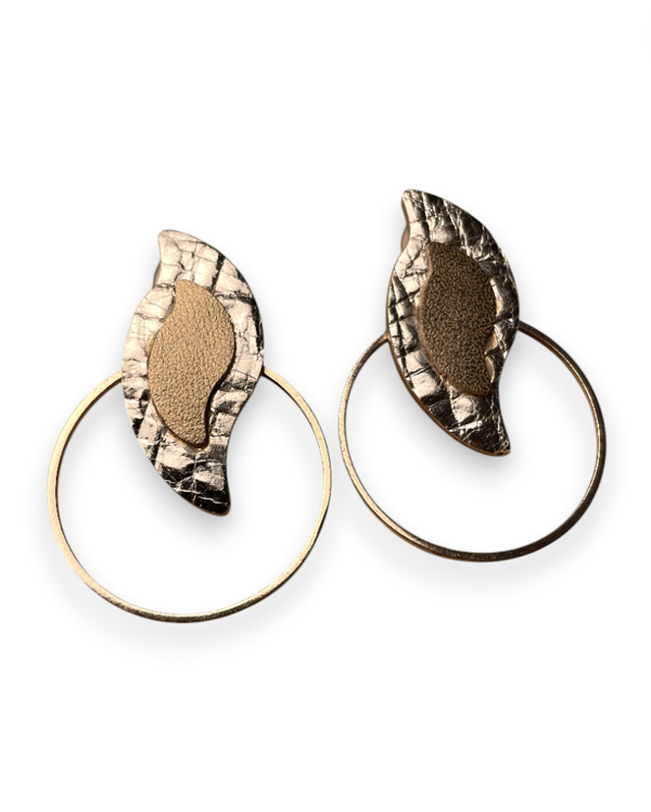 Boucles d'oreilles en cuir recyclé sur attaches puces ou dormeuses et anneaux en acier inoxydable.