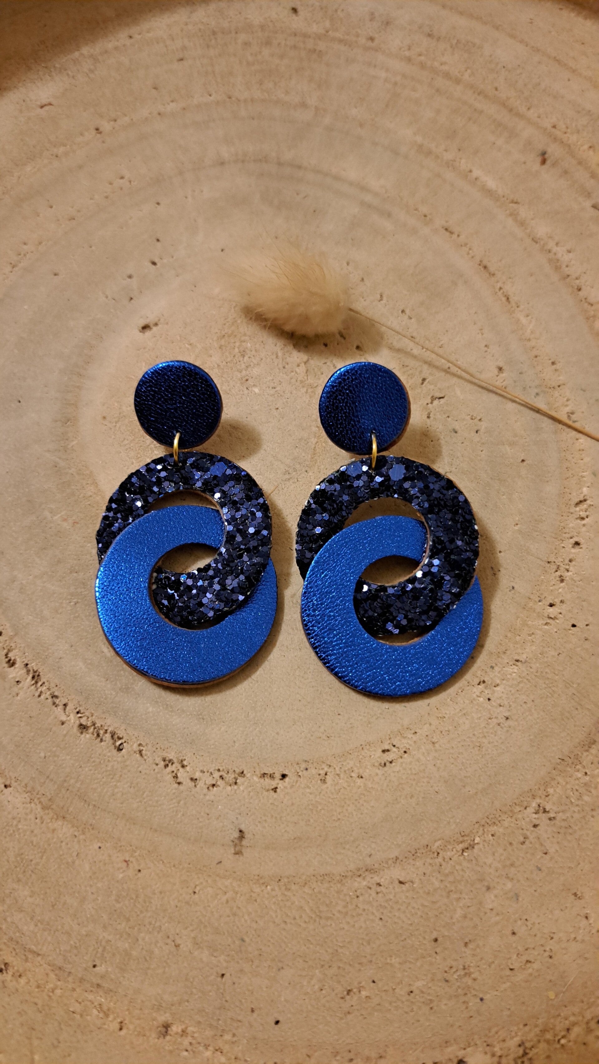 Boucles d’oreilles en cuir doré et paillettés Éclat & Élégance