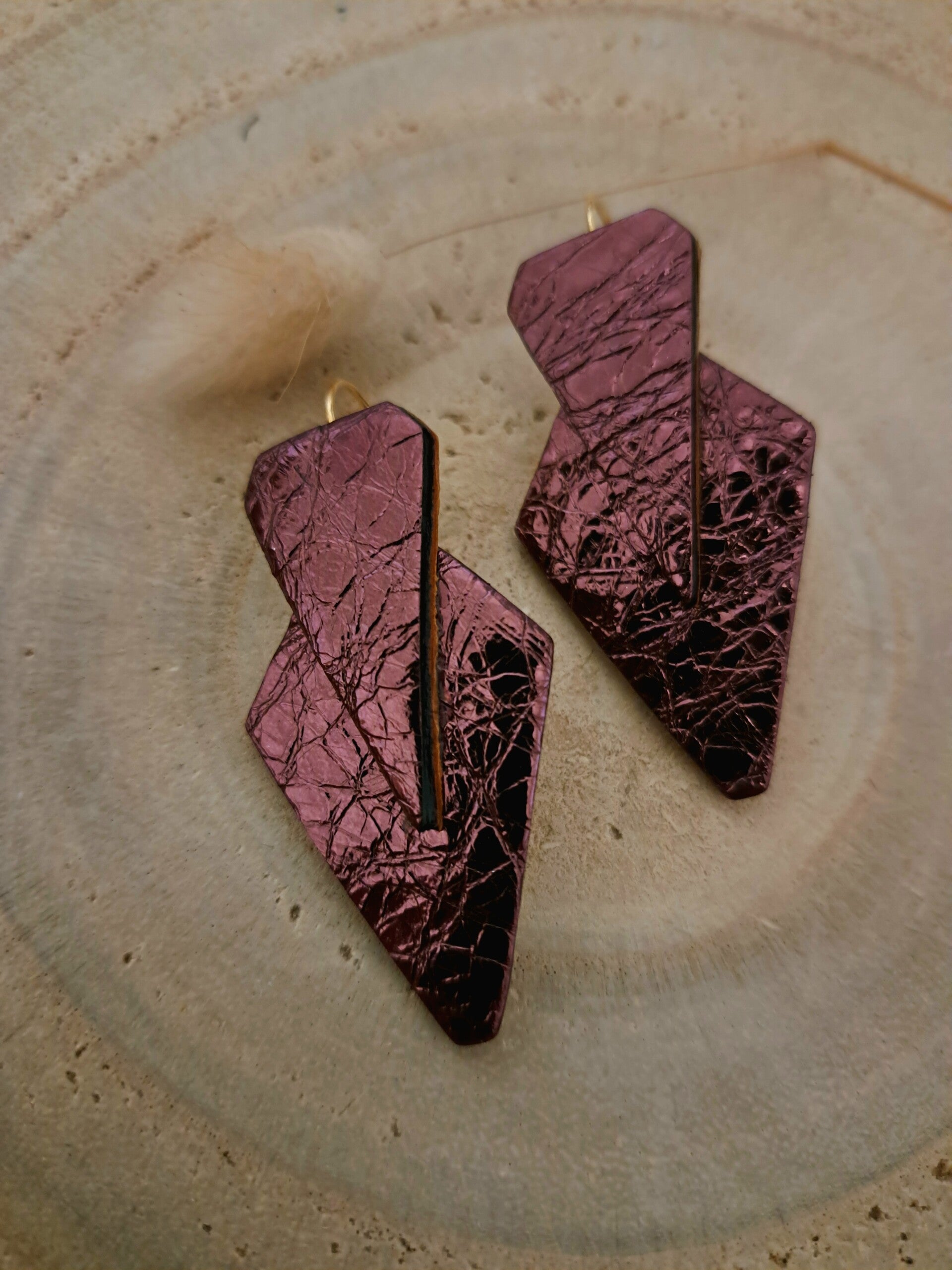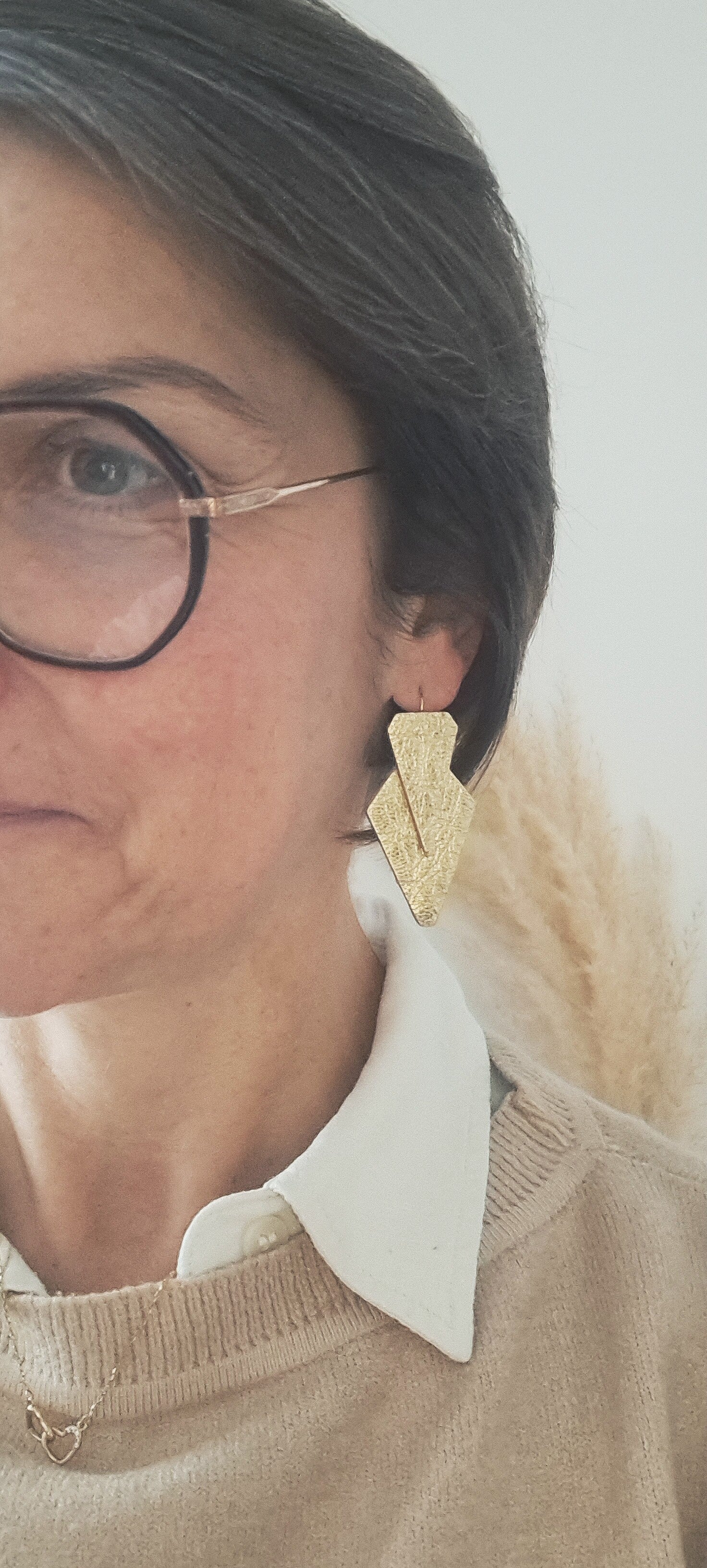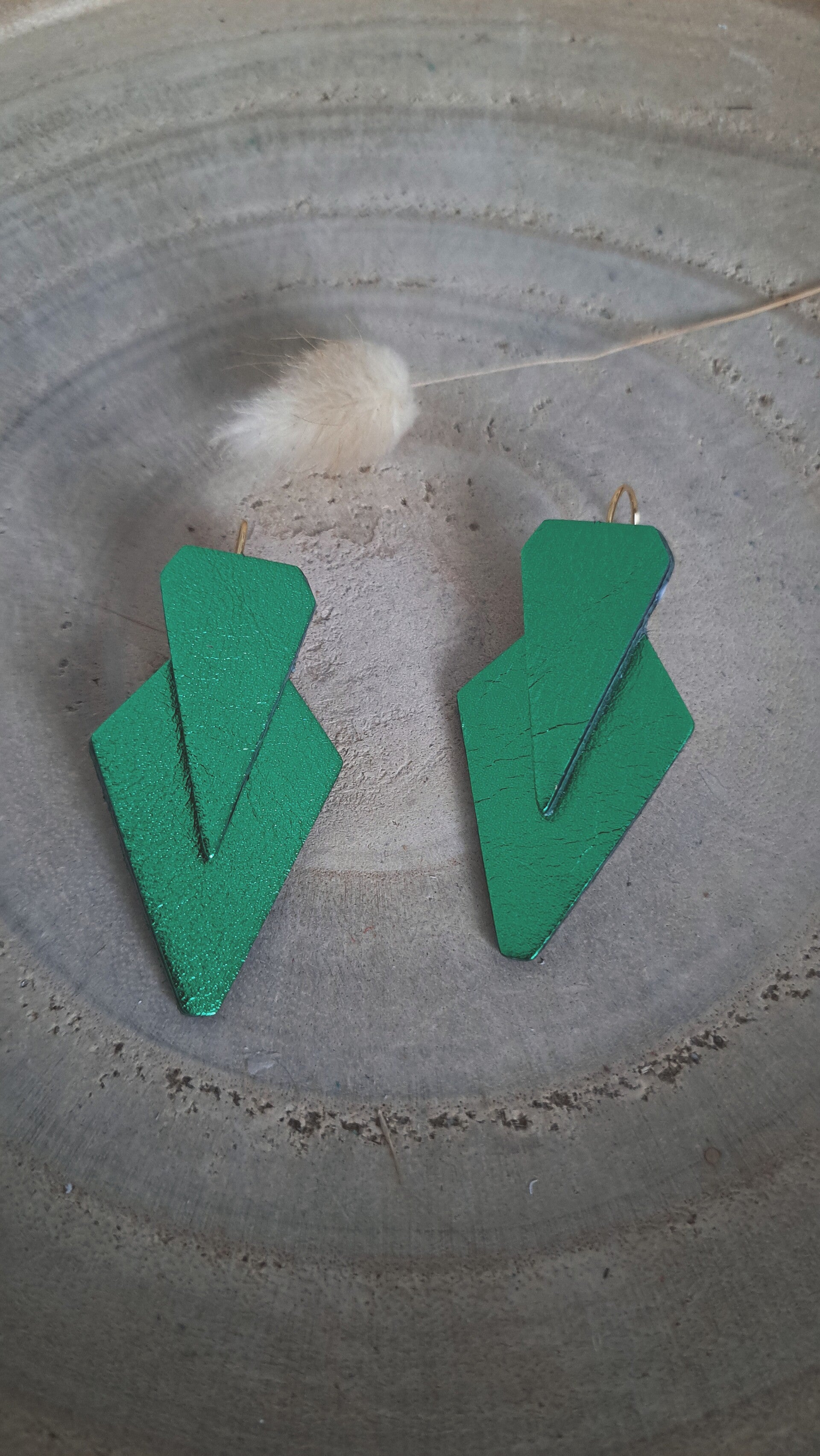 Paire de boucles d'oreilles en cuir recyclé sur attaches dormeuses en acier inoxydable.